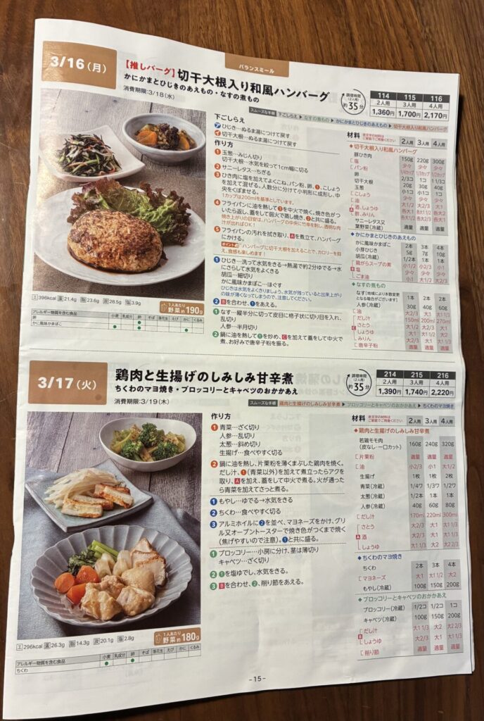 バランスミールのような栄養重視コースは、時間に余裕がある日や、しっかり料理したい人にはとても良い内容です。品数も多く、健康的な食事がとれるのは大きな魅力。ただし平日の忙しい時間帯に毎日続けるには少し負担が大きいため、ライフスタイルに合わせて使い分けるのがおすすめです。